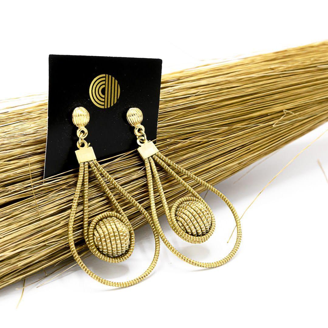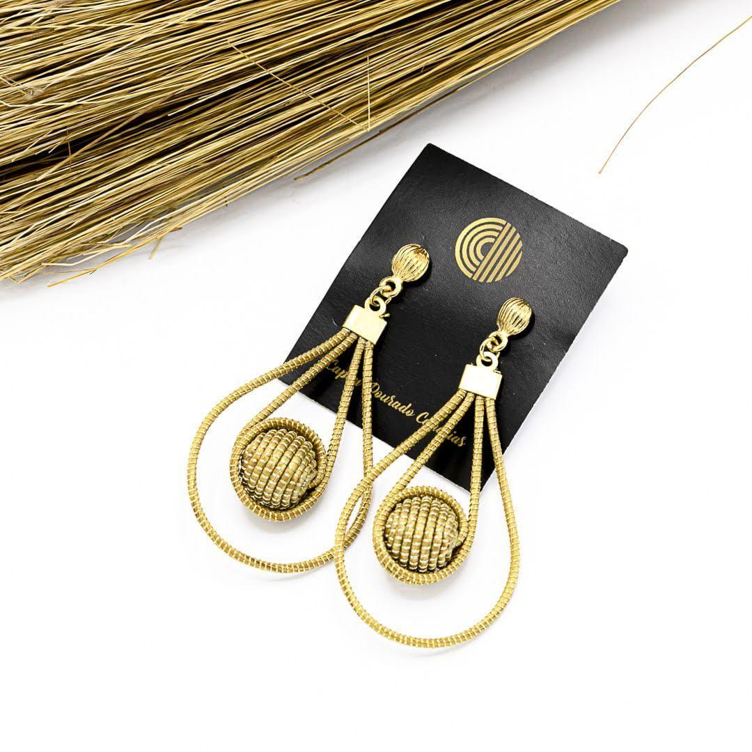 Pendiente de doble gota con una bolita elaborada en oro vegetal